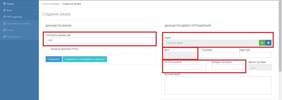 Поле «Время приезда» заполните только в том случае, если доставка необходима в точное время.