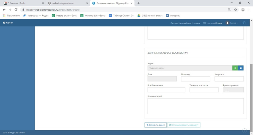Вполе «Ф.И.О. контакта»необходимо указать контактное лицо, у которого курьер будет забирать заказ.