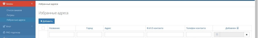 Служит для создания любимых адресов отправления и доставки. Если ваши доставки осуществляются по одним и тем же адресам, либо вам необходимо забирать грузы с одних и тех же адресов.