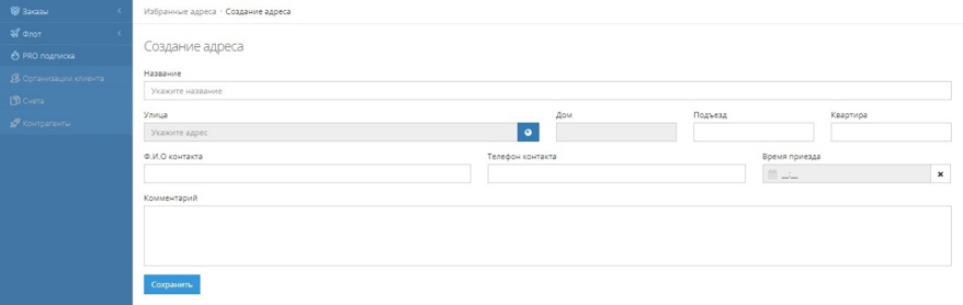 Вы можете заранее создать «Любимый адрес» — это ускорит процесс заполнения заявки. Иконка Звездочки открывает список добавленных Избранных адресов.